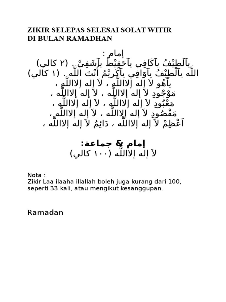 Doa Selepas Solat Witir Pdf
